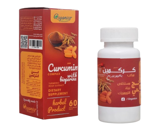 أقراص كركمين 1000 مجم معزز بالبيوبرين – 60 قرص سهل البلع من إنتاج أورجانيكو