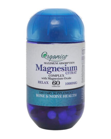 استمتع بدعم شامل لصحة عضلاتك وأعصابك مع كبسولات ماغنيسيوم سترات بتركيز 1000 مجم من شركة أورجانيكو.